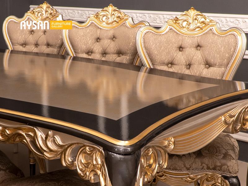 ست مبل کلاسیک پارمیس یکی از چندین مدل مبل کلاسیک موجود در بازار مبلمان است که ازنظر ظاهری بسیار زیبا ست و علاوه بر زیبایی دارای کیفیت بسیار خوبی می باشد.مبل های کلاسیک در تنوع رنگی مختلفی تولید میشوند اما بعضی از رنگ ها زیبایی مبلمان کلاسیک را دو چندان میکنند و بهتر است از رنگ های مناسب برای مبلمان کلاسیک استفاده شود. هیچ محدودیتی در انتخاب رنگ مبل وجود ندارد اما برای مبلمان کلاسیک بهتر است که از رنگ های خنثی مانند طوسی و بژ استفاده شود چراکه این رنگ ها با قرار گرفتن در کنار رنگ های دیگر فضای جذاب تری را به وجود می آورند.رنگ ها دارای تناژ رنگی گرم و سرد هستند شما باید متناسب با دکوراسیون منزل رنگ مبلمان خود را انتخاب کنید و از محیط خانه خود لذت ببرید.در مبلمان کلاسیک تنها رنگ پارچه دارای اهمیت نیست بلکه رنگی که بر روی منبت و کنده کاری های مبل کلاسیک پاشیده میشود دارای اهمیت زیادی است.در قسمت منبت دسته ها و پایه های ست مبل پارمیس از رنگ پلی اورتان استفاده شده است که زیبایی منبت کاری های این مبل را بهتر به نمایش بگذارد.پارچه استفاده شده در این ست مبلمان از نوع پارچه نانو است که خاصیت ضد لک و ضد گرد و غبار دارد .نشیمن راحت این مبل از نوع فوم گریت است که دارای انعطاف پذیری و ارتجاع بالایی است.جنس چوب این کار از نوع راش گرجستانی بوده که از مقاومت و استحکام بالایی برخوردار است.استراکچر مبلمان تماما از چوب سوپر راش گرجستانی است.این مبل زیبا دارای ست ناهار خوری هشت نفره همراه با هشت عدد صندلی ناهار خوری است.