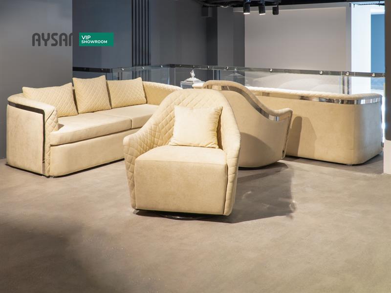 مبلمان راحتی و مدرن برلیان با طراحی ویژه ای که دارد این مبل را نسبت به مبل های راحتی دیگر متمایز کرده است. این مبل راحتی یک ست مبل هشت نفره است که از دو عدد مبل سه نفره و دو عدد مبل تک نفره تشکیل شده است . این مبل کوسن های نسبتا بزرگی دارد که برای استراحت بسیار مناسب است و پشت کمر را موقع نشستن پرمیکند و تکیه دادن را بسیار راحت می کند. پارچه این کار از جنس پارچه ترک است این نوع پارچه ها تولید کشور ترکیه هستند و در طرح های مختلفی طراحی و به بازار ایران وارد می شوند ،این پارچه ها کیفیت بسیار خوبی دارند و ضد لک هستند و اخیرا در صنعت مبلمان بسیار مورد استفاده قرار می گیرد.نشیمن مبل برلیان از فوم سرد است ، فوم سرد از بهترین نوع فوم هایی است که در کف مبلمان استفاده می شود زیرا این فوم خاصیت ارتجاعی دارد و سریع تر از فوم های دیگر به حالت اولیه برمی گردد. بدنه و پایه های مبل جدید برلیان از استیل است.تک نفره های این مبل به صورت گردان طراحی شده است.مبل برلیان در شعبه VIP آیسان واقع در زرگری نبش کوچه 18 موجود است منتظر حضور گرم مشتریان عزیز در نمایشگاه آیسان هستیم.